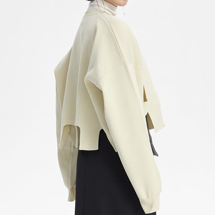 Curved sleeve line, crop design.