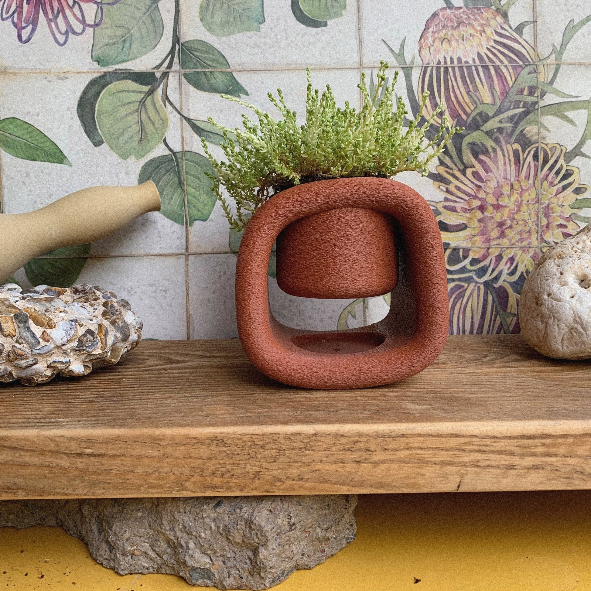 This textured planter is 3D printed using recycled PLA - a biodegradable and eco-friendly material derived from renewable resources like cornstarch or sugarcane.