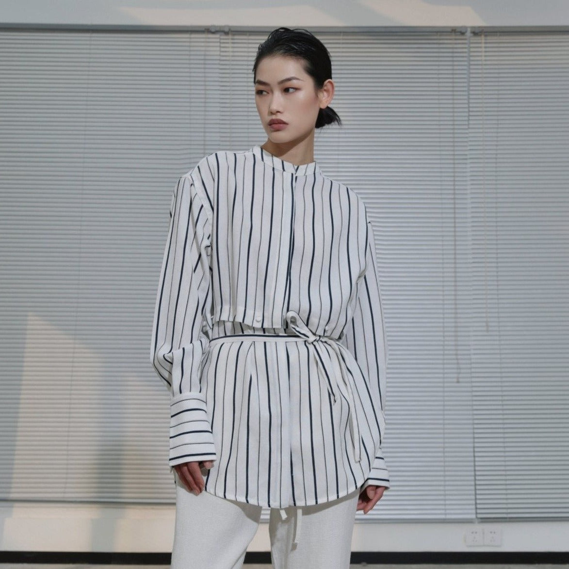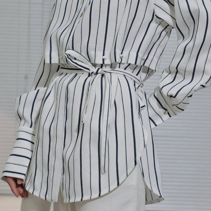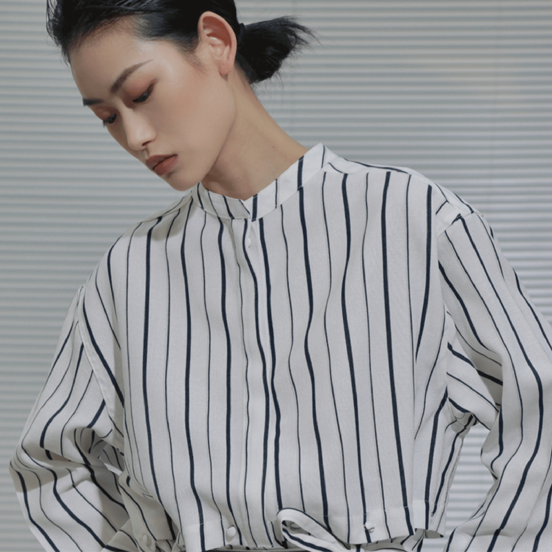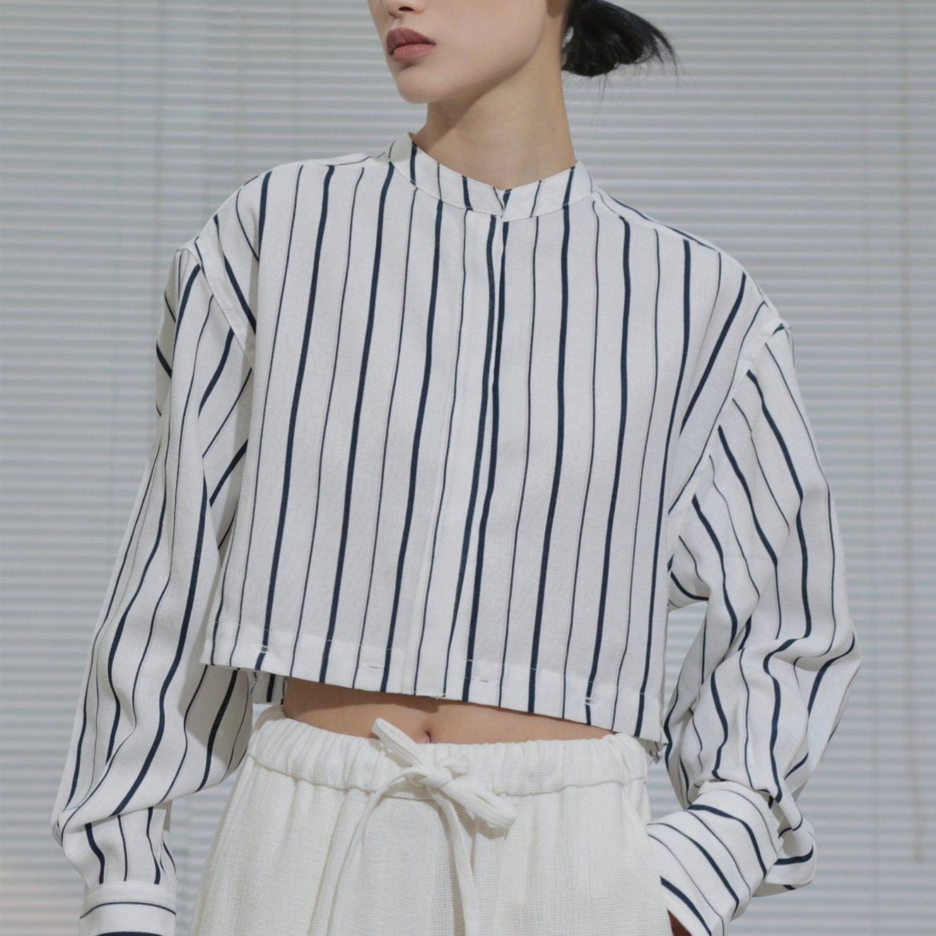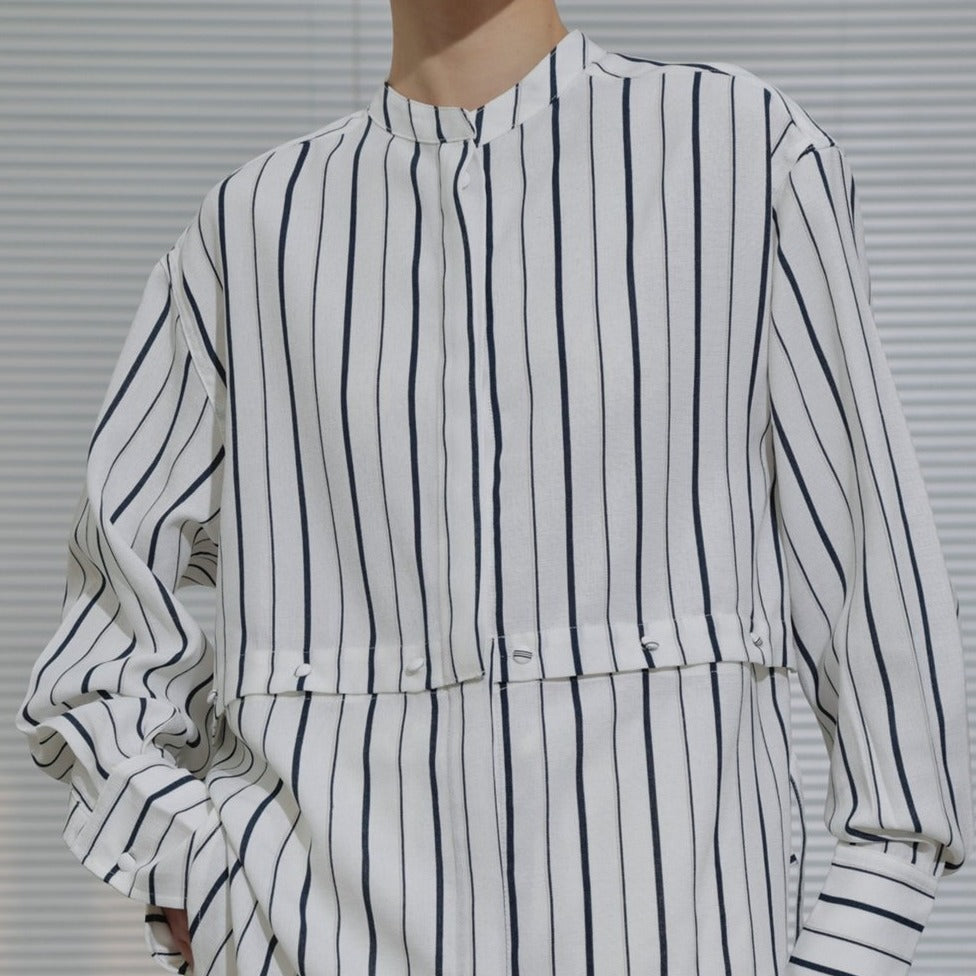 Creative wearability. Button on and off the bottom part of the shirt to change the length. Perfect as a crop-top, enhanced silhouette with the full set.