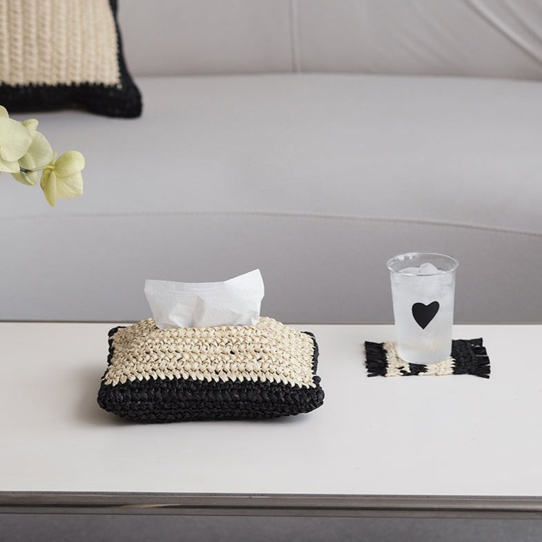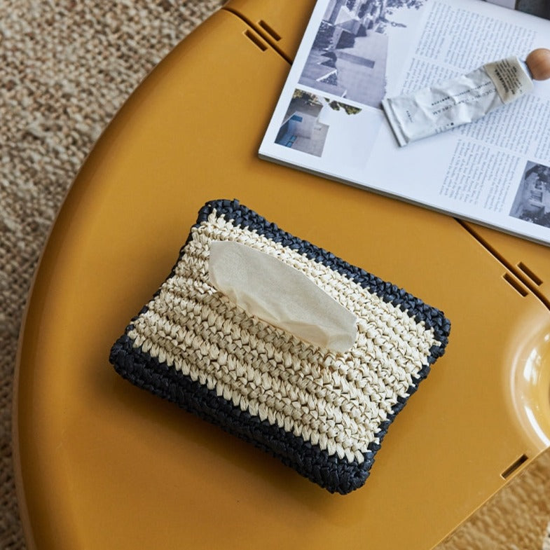 Decorative and functional handwoven tissue holder .