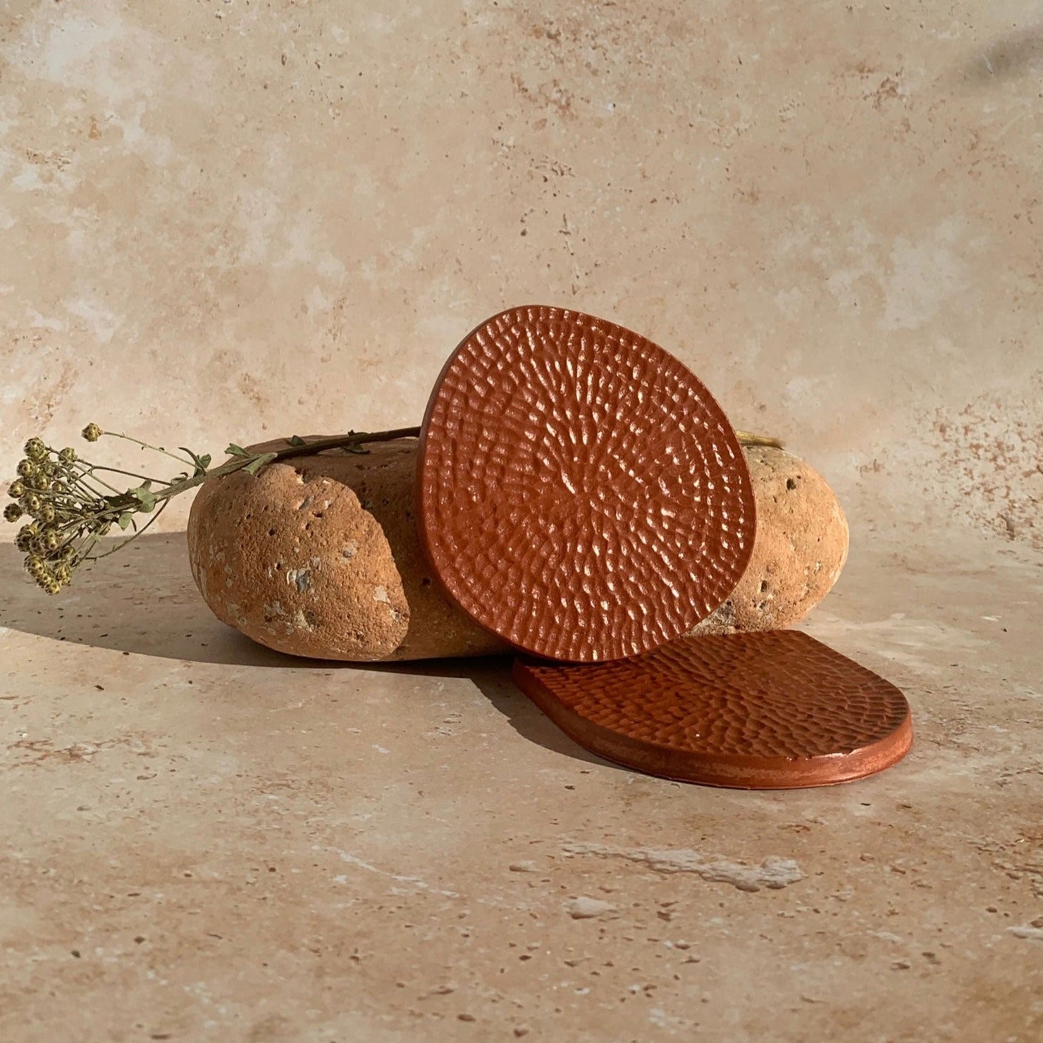 Two pieces set of coasters, Round shaped.