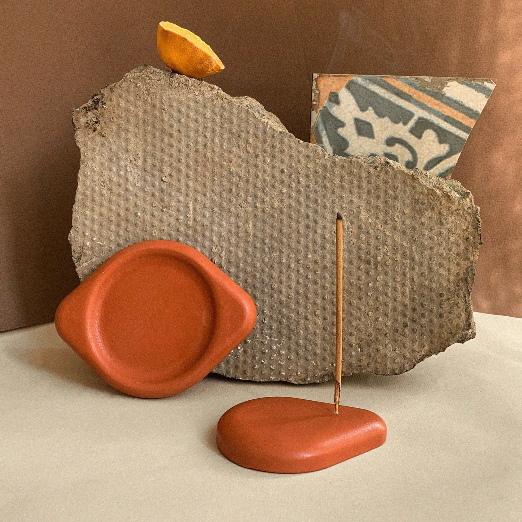 A set of coasters with a geometric design and range of warm, earthy colours - the perfect accent to any modern home.